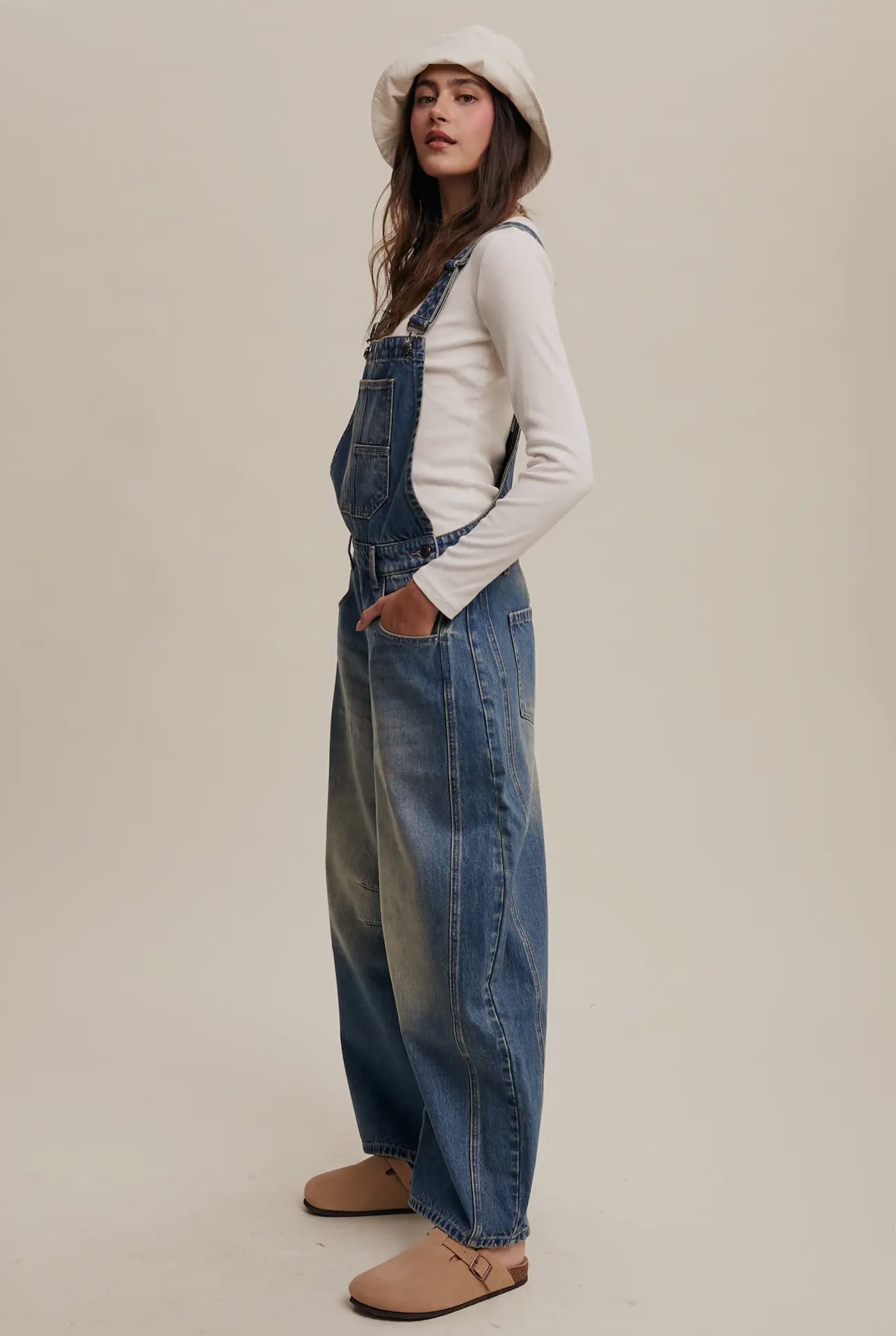 Vintage-inspired with a modern twist, the Barrel Jean Denim Overalls bring effortless cool to your everyday style. Designed with a relaxed, wide-leg silhouette and a perfectly faded wash, these overalls balance laid-back comfort with a structured, flattering fit. Adjustable shoulder straps and side button closures allow for easy wear, while multiple pockets add that touch of practical charm.