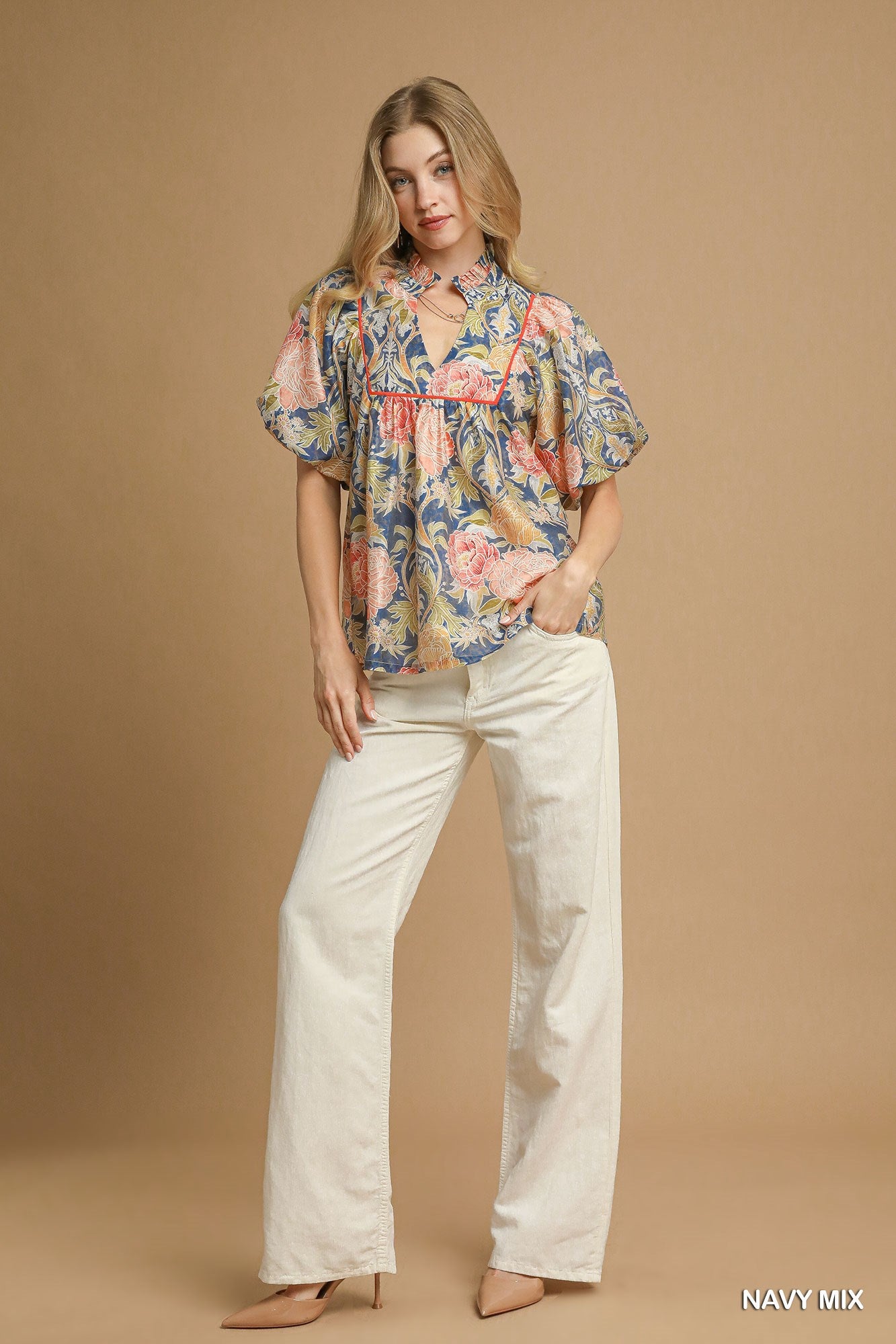 Soft, romantic, and effortlessly charming—the Maribelle Blouse brings timeless femininity with a fresh twist. Featuring a ruffled V-neckline, short puff sleeves, delicate contrast piping, and smocked details for added shape, this peasant-style top is the definition of pretty and polished. Fully lined and made from breathable Tencel, it’s as comfortable as it is flattering.