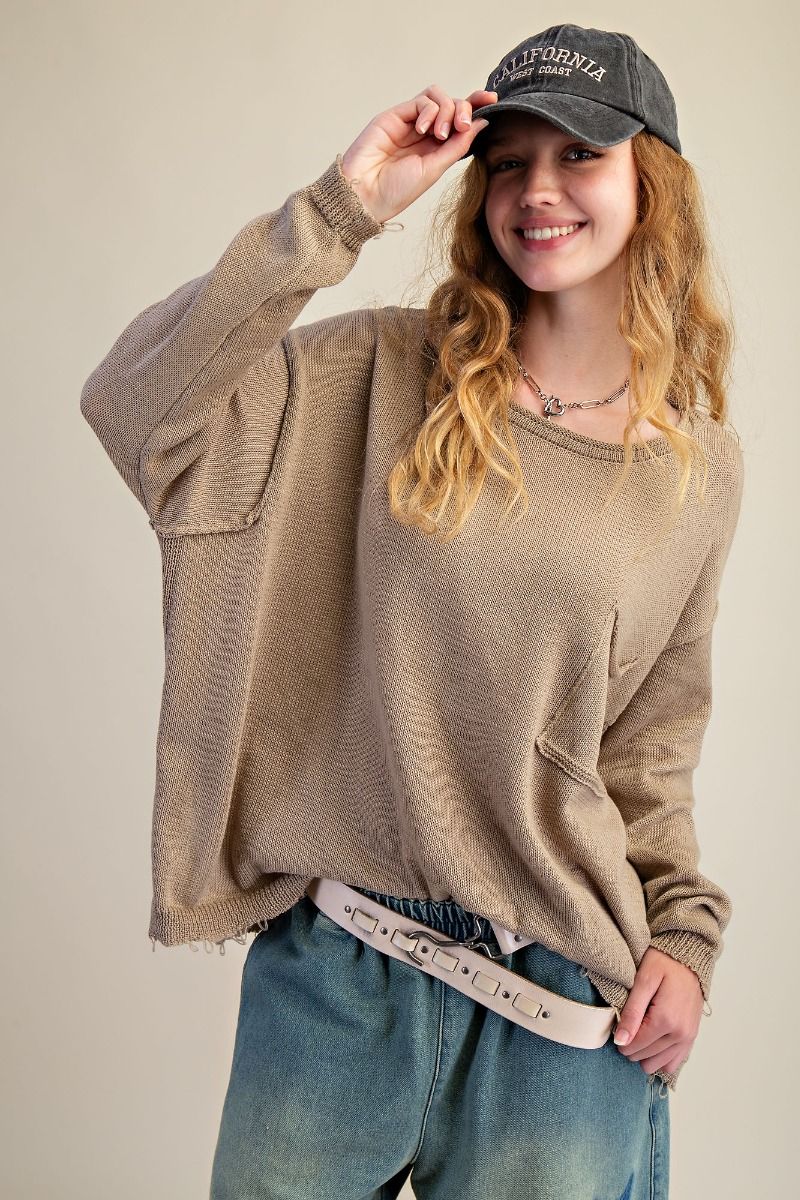 Effortlessly cool and endlessly cozy, The Pacific Knit Sweater is your new favorite throw-on-and-go essential. With a relaxed, oversized fit and wide rolled crew neckline, it’s made for layering through every season. Raw edge seams, ribbed cuffs, and side slits add lived-in texture, while the chest pocket keeps it laid-back and functional.